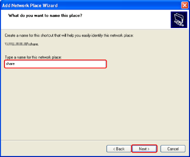 Enter the name of folder to be referenced for connecting in [Type a name for this network place], and then click [Next].