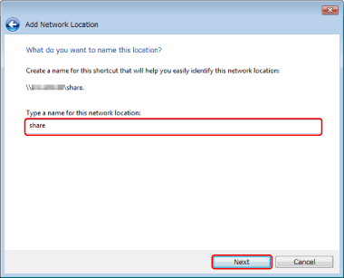 Enter the name of folder to be referenced for connecting in [Type a name for this network location], and then click [Next].