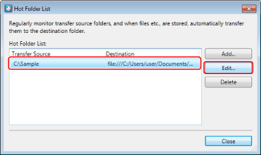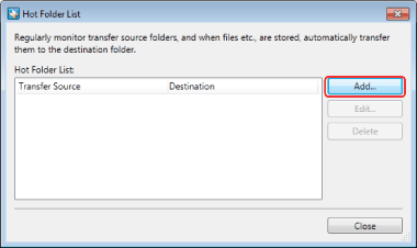 Even when you delete the hot folder settings by using the abovementioned steps, the Windows Folder which has been specified as the source folder is not deleted.