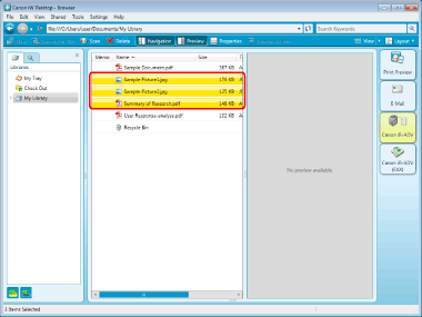 Select a document/folder to print in the File List View Pane, and click (printer output icon).