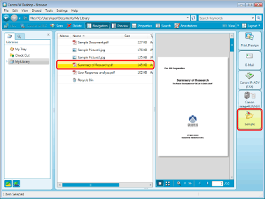 When [Move] is specified for [Document Operations] in the settings of folder output icon, the sent document is deleted from Desktop. To keep the sent document on Desktop, specify [Copy]. For more information on how to configure the folder output icons, see the following.