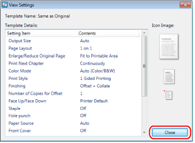 The icons are displayed in the [Templates] tab in the [Print Settings] pane.