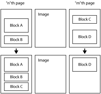If the reduction makes another margin at the bottom of the left page, blocks at the top of the right page move to the position to reduce the margin.