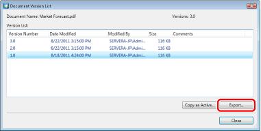 A document in a Document Server/SharePoint Server for which the version management function is not enabled in Document Server Library/SharePoint Server Library cannot be saved as a previous version.