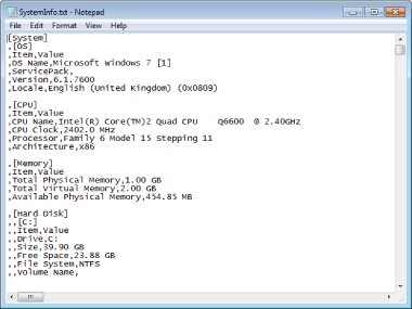 The text file of obtained environment information is always named "SystemInfo.txt."