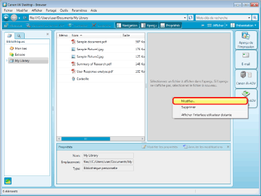 Sélectionnez un télécopieur à enregistrer dans la Barre de sortie. Vous ne pouvez enregistrer les télécopieurs utilisant le pilote de télécopieur Canon que dans Desktop.