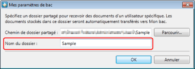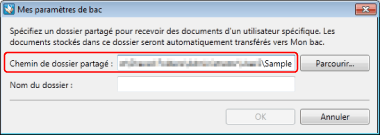 * Notez que si le dossier est configuré comme étant partagé, vous pouvez le spécifier comme dossier pour la réception via le réseau.