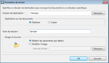 Si vous ajoutez une icône de sortie de dossier par glisser-déposer, [Opérations sur les documents] est paramétré sur [Déplacer] dans la boîte de dialogue [Paramètres de dossier].