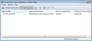 Pour afficher la fenêtre des propriétés du port, double-cliquez sur le nom du port dans la liste affichée.Si plusieurs ports sont sélectionnés, la fenêtre des propriétés ne s’affiche pas.