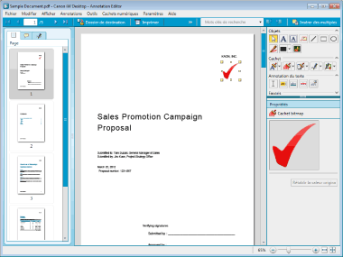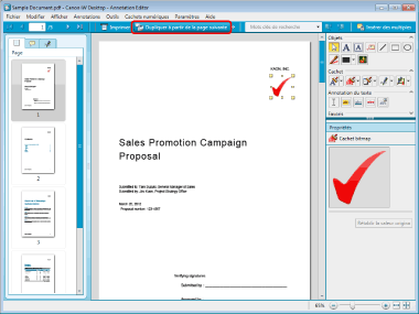 L'annotation que vous avez sélectionnée est insérée au même endroit dans chaque page, en utilisant le coin supérieur gauche de la page en guise de référence.