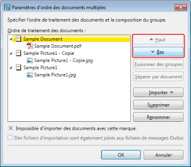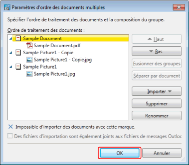 [Paramètres d'ordre des documents multiples] : affiche la boîte de dialogue [Paramètres d'ordre des documents multiples].