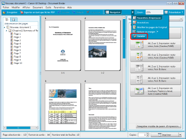Les modifications sont enregistrées sous forme de données temporaires. Elles ne sont pas intégrées au document pour édition tant que vous ne revenez pas à Document Binder et les enregistrez.