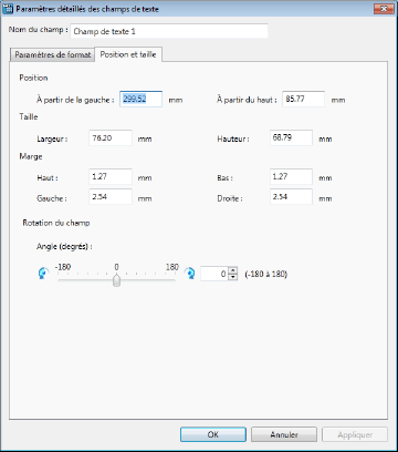 La position du curseur montre l'angle du champ de texte. Pour modifier cet angle, déplacez le curseur vers la gauche ou la droite.
