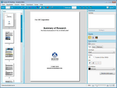 Der Variable Editor ist ein Bearbeitungswerkzeug für Binder-Dokumente. Sie können mit dem Variable Editor einrichten, dass bestimmte Seitenbereiche in einem Binder-Dokument beim Druck ersetzt werden ("Variablendruck").