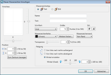 Wählen Sie eine der folgenden Einstellungen für die Neigung des Wasserzeichens: