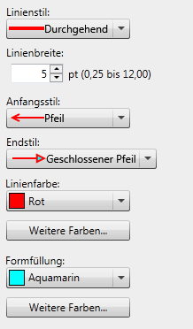 Um den gewünschten Stil für den Anfang der Linie aus der Liste auszuwählen, klicken Sie hier