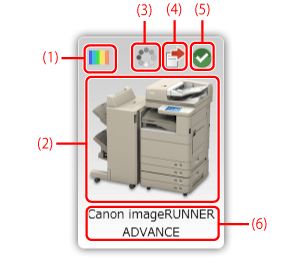Wenn der Mauszeiger über das Quick Printing Tool gehalten wird, wird der Status der Geräte als Symbol angezeigt. Auf diese Weise können Sie den Status externer Geräte überprüfen.