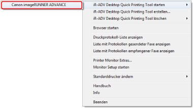 (Hauptsymbole) in der Taskleiste, wählen Sie [iR-ADV Desktop Quick Printing Tool starten] und dann das zu startende Quick Printing Tool.