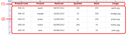 Die Daten in den Zeilen der Datenbankdatei, die nach der Feldzeile kommen, werden zu Datensätzen.