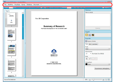 Consente di modificare documenti, leggere record, impostare campi di variabili e configurare le impostazioni di visualizzazione da un menu.
