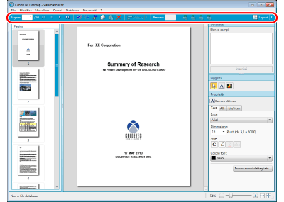 Consente di eseguire operazioni quali il passaggio tra le pagine visualizzate, la modifica di documenti e il passaggio tra i record visualizzati sulla barra degli strumenti.