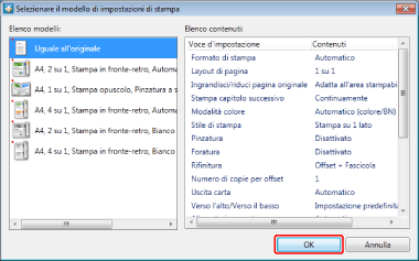 Selezionare un modello da utilizzare durante la stampa. Per ulteriori informazioni sulla procedura, vedere il punto 3.