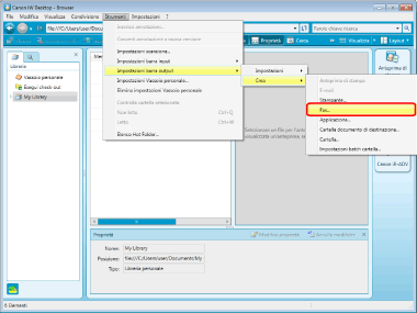 Selezionare il menu [Strumenti] > [Impostazioni barra output] > [Crea] > [Fax].