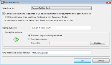 Se si aggiunge un'icona di output del fax mediante trascinamento, verrà selezionata la casella di controllo [Combina i documenti selezionati in un solo documento con Document Binder per l'invio di fax].