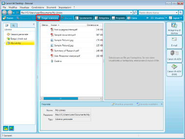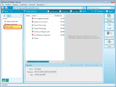 Nella schermata di Desktop Browser, è possibile eseguire la scansione di un documento cartaceo e importare (registrare) il documento digitalizzato nella cartella di una libreria.