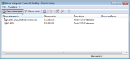 All'avvio di Desktop Monitor Setup, l'elenco delle stampanti è visualizzato nella finestra principale. Facendo clic su [Elenco porte] si passa alla visualizzazione dell'elenco delle porte.