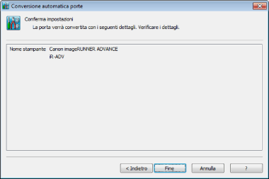 Consente di chiudere la procedura guidata di conversione automatica della porta.
