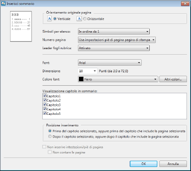 Il capitolo "Sommario" non può essere duplicato, eliminato o spostato in un documento raccoglitore diverso.