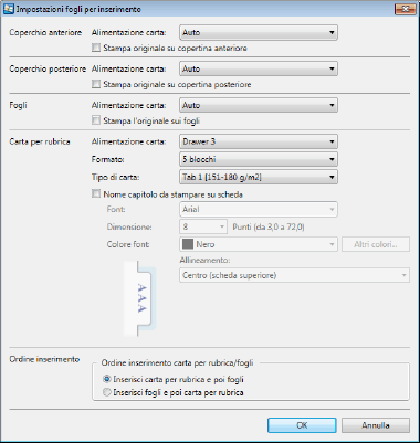 Selezionare [Inserisci carta per rubrica e poi fogli] o [Inserisci fogli e poi carta per rubrica].