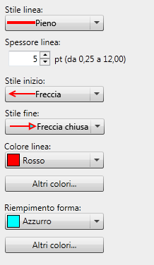 Selezionare dall'elenco visualizzato il colore che si desidera utilizzare per il riempimento dall'inizio alla fine della freccia, facendo clic su