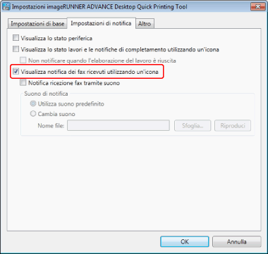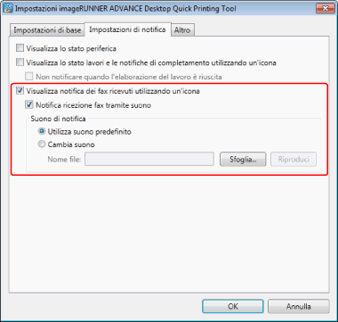 Se la porta attiva per applicazioni non è configurata, selezionare [Visualizza notifica dei fax ricevuti utilizzando un'icona], quindi fare clic su [OK] nelle impostazioni per cambiare automaticamente la porta.
