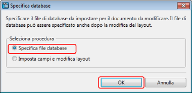 Se si desidera creare solo il layout e importare il database successivamente, selezionare [Imposta campi e modifica layout] e fare clic su [OK]. Viene visualizzata la schermata Variable Editor.