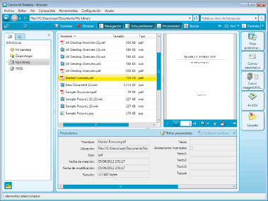Desktop Browser se abre con la misma vista del panel que cuando se cerró por última vez. Sin embargo, cuando vuelva a abrir el panel de navegación, se iniciará mostrando la pestaña [Bibliotecas] aunque antes del reinicio mostrase la pestaña [Condiciones de búsqueda].