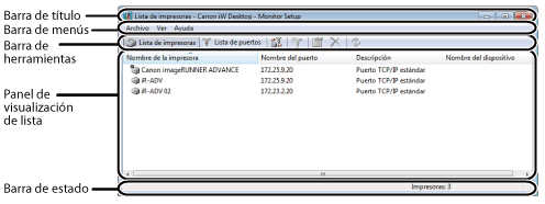 [Panel de visualización de lista (Lista de impresoras o Lista de puertos)]