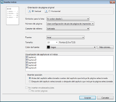 Si se selecciona [No insertar encabezados/pies], es posible seleccionar si incluir o no el capítulo de la tabla de contenido en el recuento de páginas.