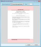 Las páginas de Contenido y las páginas con anotaciones y sellos digitales adjuntos se excluyen cuando se reducen los márgenes. Debido a esto, aunque se seleccione [Eliminar área especificada], no se eliminarán las áreas dentro del área especificada en la que no se puede realizar la edición. En estos casos, deberá eliminar de forma manual los objetos que desee suprimir.