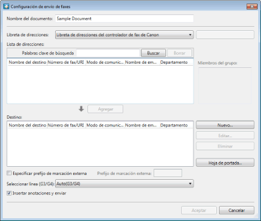 No obstante, las anotaciones añadidas con un programa distinto a Annotation Editor podrán enviarse como fax con independencia de si seleccionó o no la casilla [Insertar anotaciones y enviar], en función del tipo de anotación.