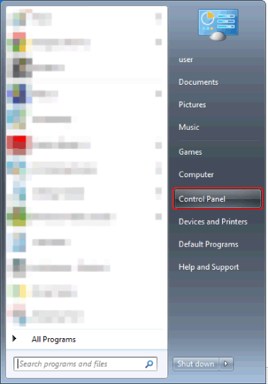 For Windows 8/Windows 8.1, select [Settings] from the Charms on the [Desktop] screen > [Control Panel] and proceed to step 2.
