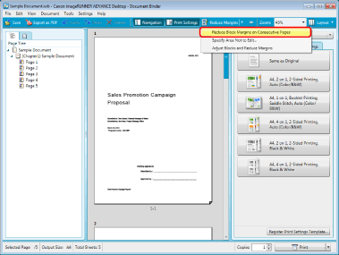 (Reduce Block Margins on Original Pages).If buttons are not displayed on the Document Binder Toolbar, set the buttons on the Toolbar. For more information, see the following.