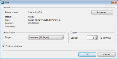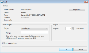 However, annotations added with something other than Annotation Editor may be printed regardless of whether you select the [Print annotations] check box, depending on the type of annotation.