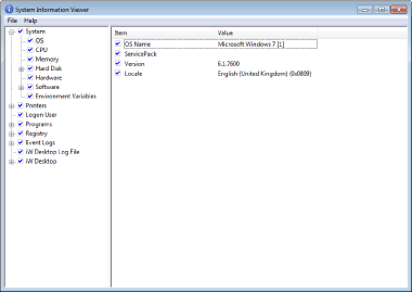 Displays environment information items obtained by System Information Viewer in a tree view.