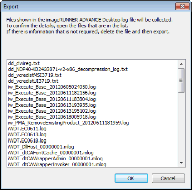 Saves as a text file and collects log files for only the items whose check boxes are selected in the information display area.