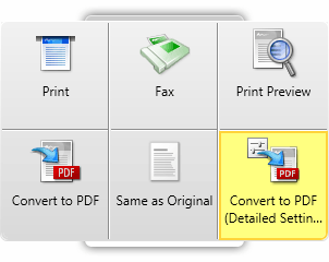 Right-click the Quick Printing Tool > [iR-ADV Desktop Quick Printing Tool Settings] > [Other] tab > [Display dialog box when [Convert to PDF (Detailed Settings)]].