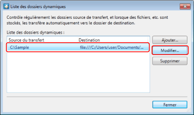 Le dossier dynamique est contrôlé toutes les 60 secondes, et sera transféré en conséquence. Les documents et données d'image ajoutés dans le dossier dynamique seront également transférés vers le dossier de destination dans les conditions suivantes.