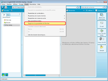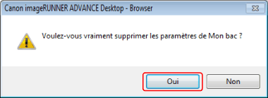 Lorsque vous reconfigurez ou supprimez un dossier déjà enregistré dans Mon bac, celui-ci ne peut pas être configuré ou supprimé s’il y a des documents dans Mon bac. Supprimez les documents qui se trouvent dans Mon bac avant de le reconfigurer ou de le supprimer.
