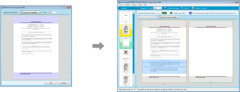 Les pages de la table des matières et les pages auxquelles sont joints des annotations et des cachets numériques sont exclues lors de la réduction des marges. En conséquence, même si vous sélectionnez [Supprimer la zone spécifiée], les zones qui se trouvent dans la zone non éditable spécifiée ne sont pas supprimées. Dans ce cas, supprimez manuellement les objets que vous voulez supprimer.